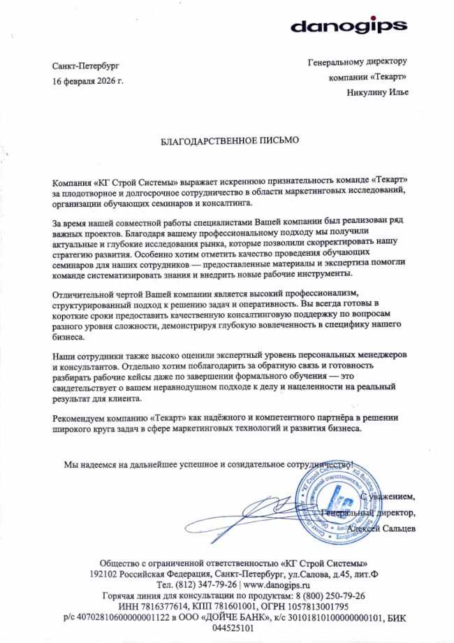 Мы благодарим всех наших клиентов, которые по собственной инициативе прислали отзывы о работе различных департаментов консалтинговой группы «Текарт». Часть из них представлена на этой странице. По вашему запросу мы подберем и предоставим отзывы и рекомендации, соответствующие интересующим вас услугам, периоду сотрудничества и отраслям.
